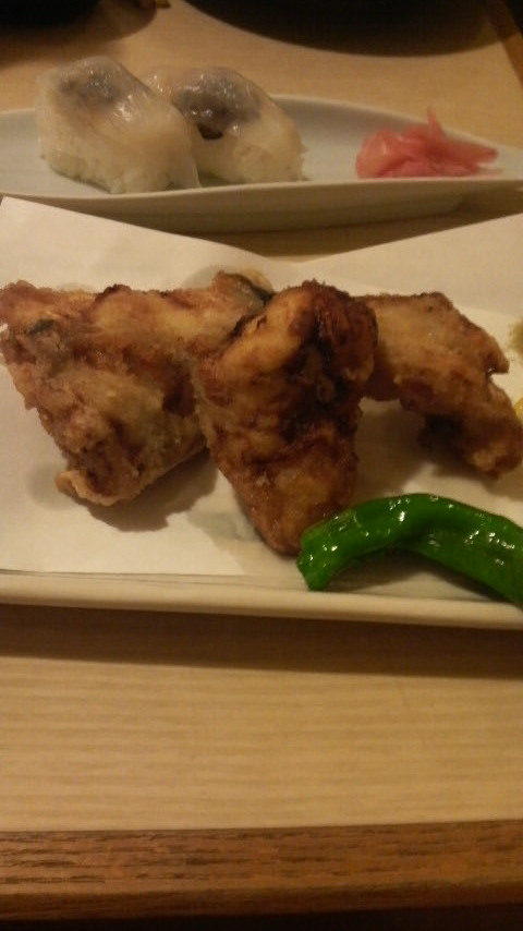 からあげがおいしかったい、てっさもお寿司も。そして雑炊はなんでかお茶碗