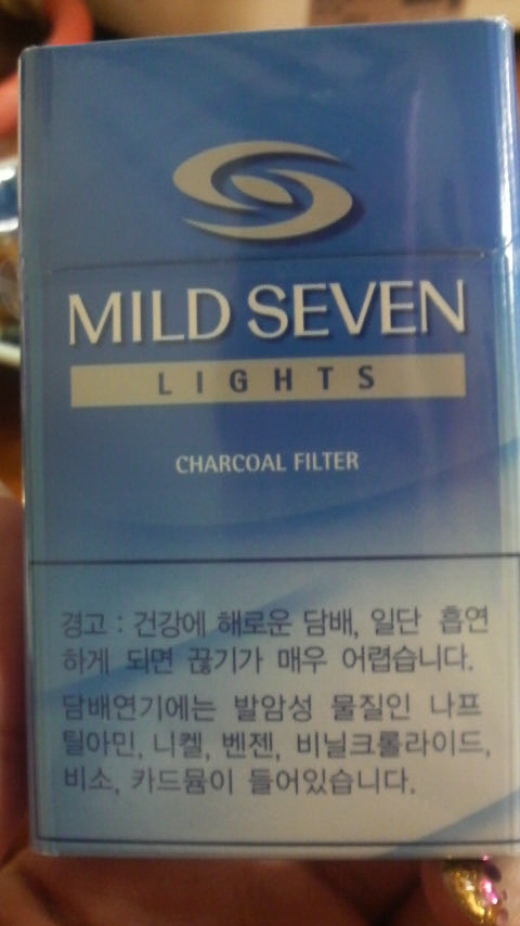 おーーー、日本にいながらにしてなぜかハングル文字のタバコがあるー!